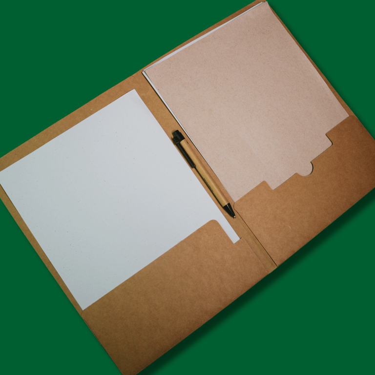 Recycled kraft folders in customizable sizes with versatile fastening options. Durable, eco-friendly, and perfect for document organization.