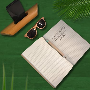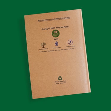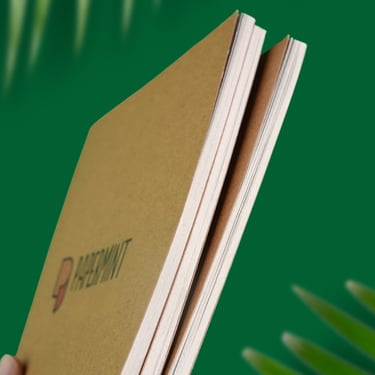 Kraft notebook with recycled pages, sturdy cover, and customizable options. Eco-friendly and perfect for everyday use.